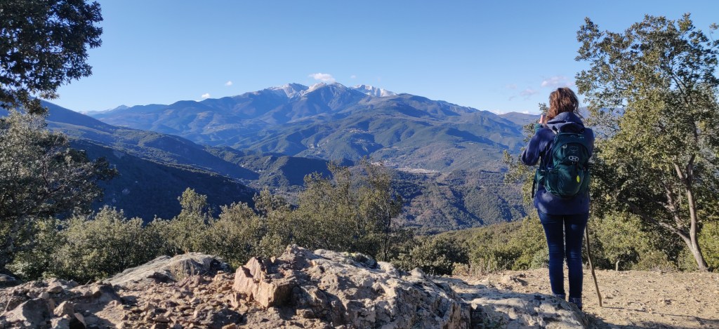 We went on a few walks around the area, always from Ceret. We climbed the mountain behind Ceret – a small peak of only 675m but at least we can say we conquered a peak of the Pyrenees! From the top you can see the whole of the Roussillon region – French Catalonia. There was a flagpole and a plaque with a Catalan poem at the top. We walked on the road that Laurie Lee used to cross into Spain in 1937 to join the International Brigade, and saw some Griffon vultures, which are huge and ride the thermals looking for carrion (they might have appeared because we sat down for a rest). French footpaths are notoriously badly signposted, and tracks apparently leading to where you want to go can lead to a ‘private’ sign half way along – why not put it at the track entrance? At least our walks were extended a bit!