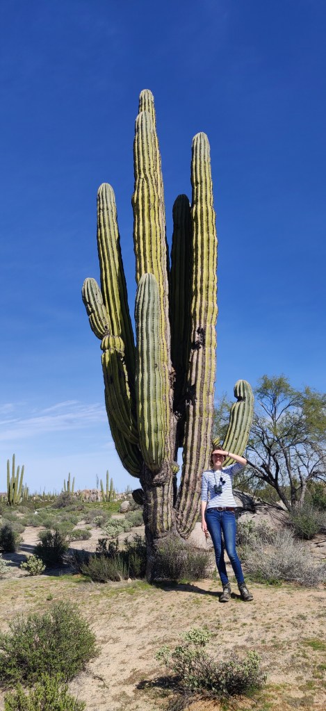 Our main objective in Mexico was to get to Guerrero Negro to see the grey whales in the lagoon of Ojo de Liebre, 700km down the coast. We were travelling through Baja (lower) California, the part of California that the USA didn’t get in 1848 after the Mexican-American war. In Mexico, Baja California is split into northern and southern states, and Guerrero Negro lies just over the border into the southern state, Baja California Sur. We spent two days driving down, staying at motels and eating out at cheap restaurants. On the second day of driving we travelled through the Baja California Desert – a proper desert with Mexican giant cactus – the type of cactus you think of when you think of cactus. It’s very sparsely populated, with 30-40 mile stretches of nothing at all and no phone signal at all. If you break down and need help, you’d have to wait for another car to pass. We saw eagles and vultures, but all the rattlesnakes and tarantulas are thankfully hiding underground at this time of year.