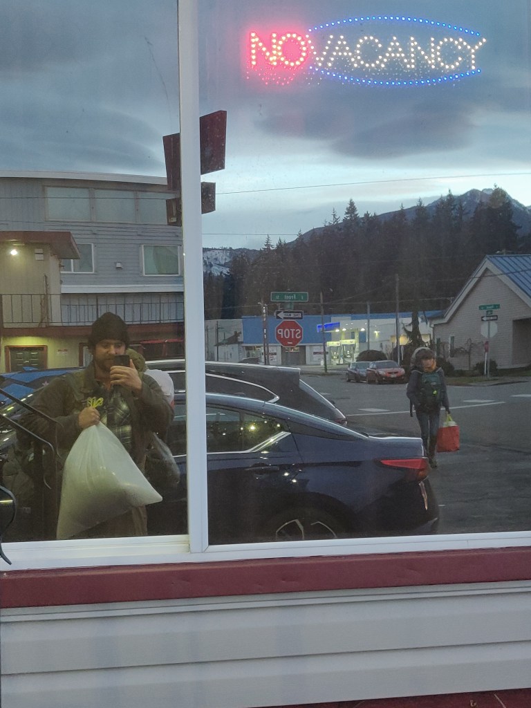 Eventually we arrived in Port Angeles, near to Seattle. We’d collected the car in Los Angeles so there was some symmetry to the journey at least in nomenclature. We had fish and chips and clam chowder, which were both very nice. I left Sarah in town and dropped the car off at the airport. It’s a small airport and only one person worked there. I asked him how I’d get back to the town on foot and he said he was about to shut down the airport and would give me a lift, so once he’d made sure all the day’s flights were landed we drove back to town in his old Subaru.
